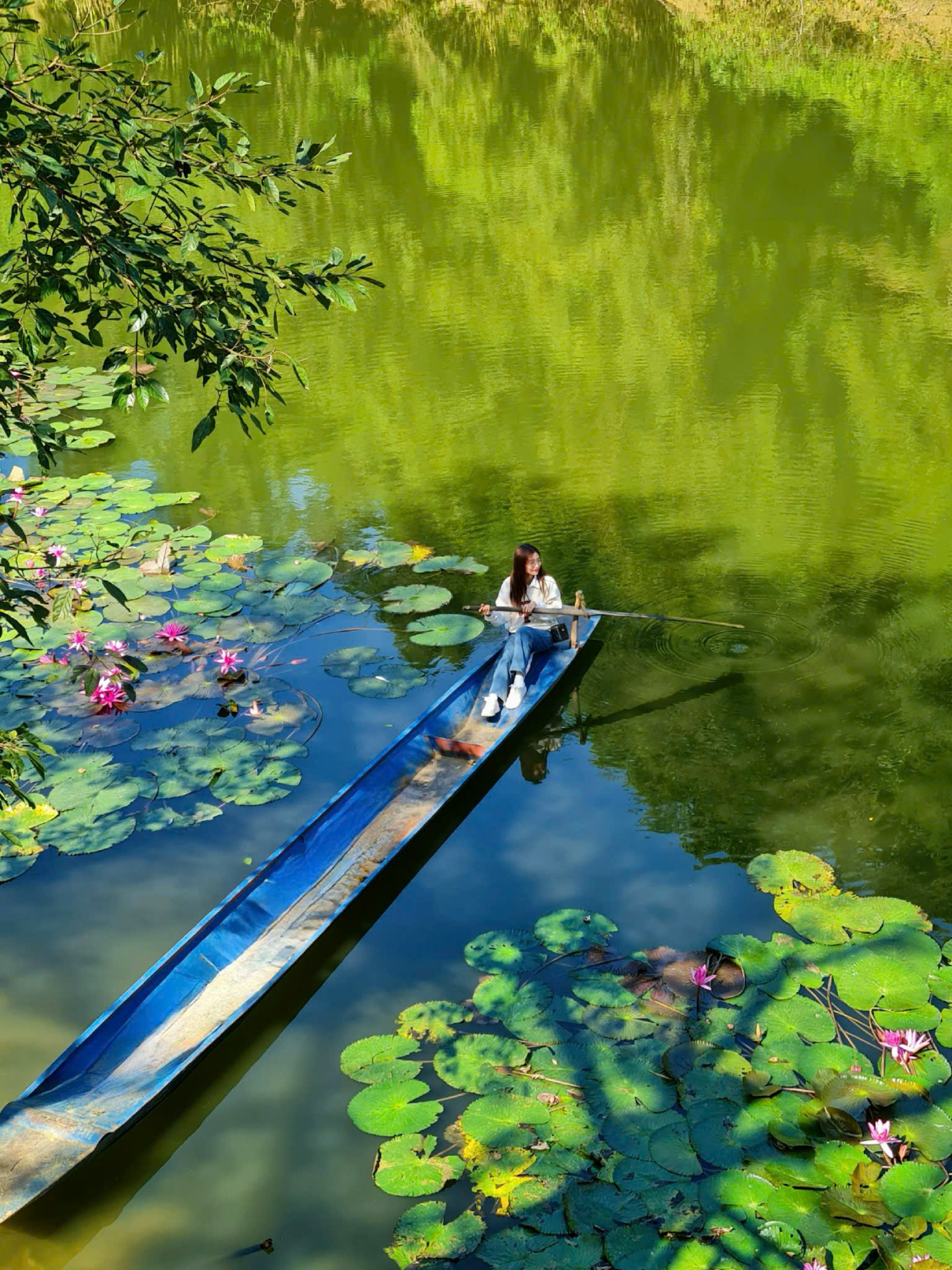 Cuối hạ sang thu là mùa hoa súng nở rộ trên mặt hồ. Những bông súng hồng, trắng vươn lên từ làn nước trong xanh, nhẹ nhàng đung đưa theo sóng tạo nên một bức tranh yên bình, giản dị mà cuốn hút đến lạ kỳ. Mùa thu còn nhuộm vàng cả không gian với những tán lá đổi màu, gợi lên cảm giác trữ tình và thi vị giữa đất trời bao la.